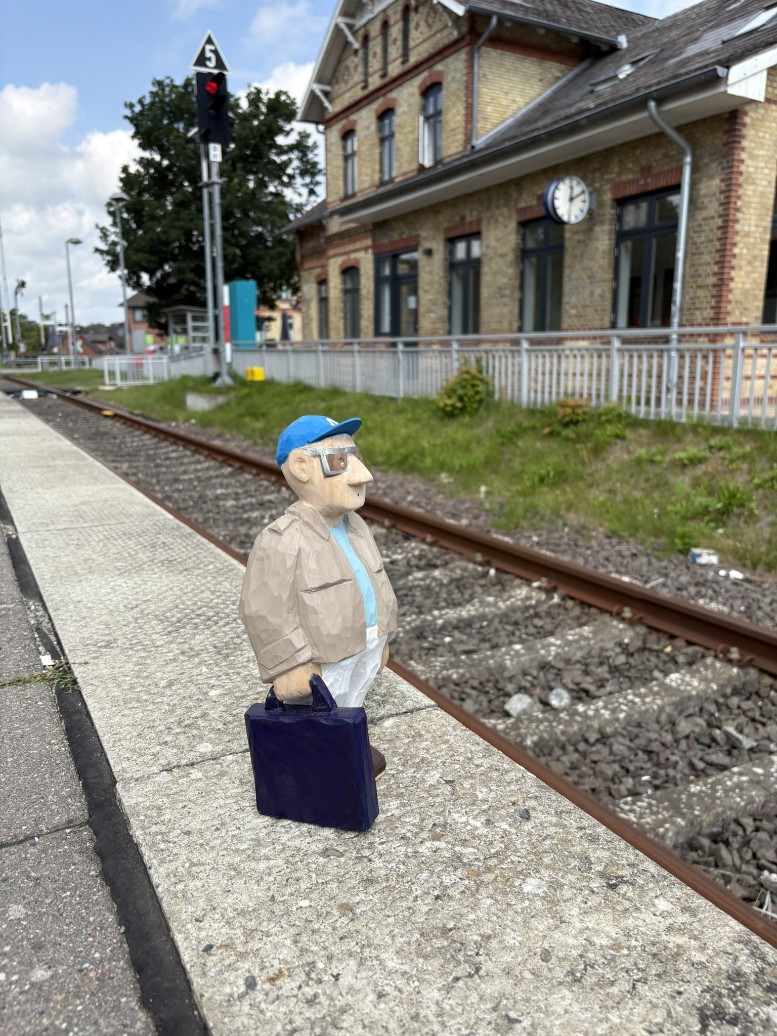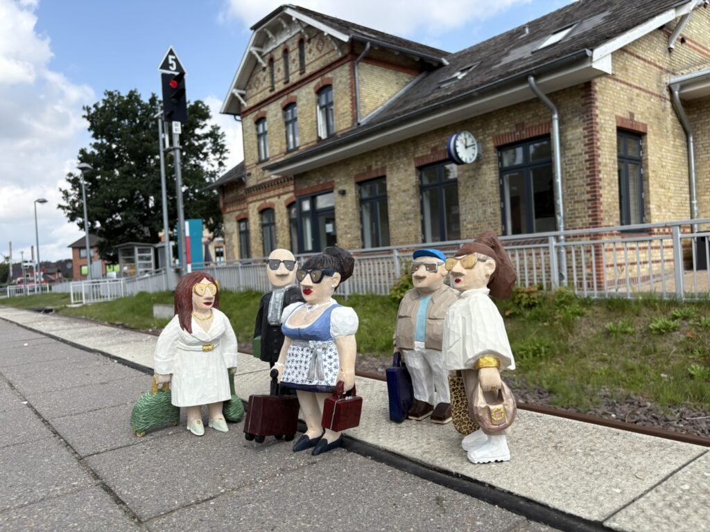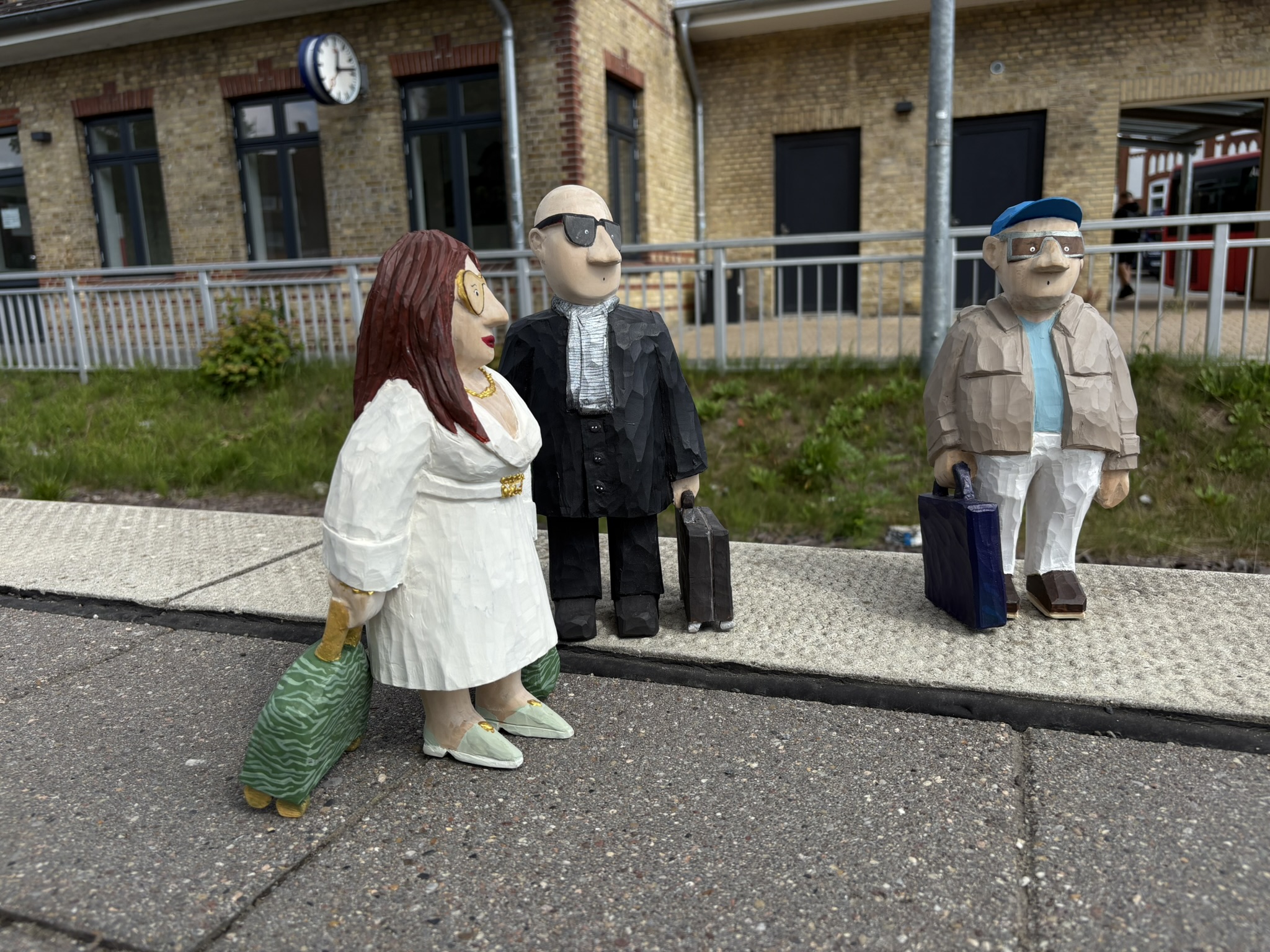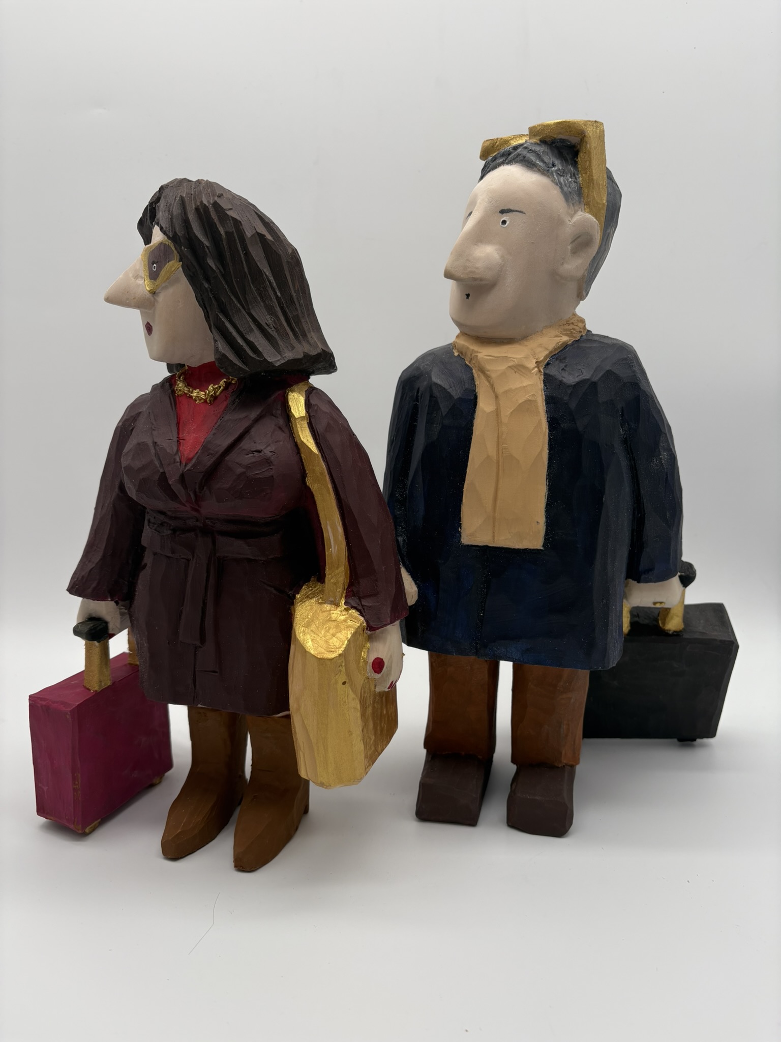 Reisende Handgeschnitze Skulpturen aus Lindenholz, farbig koloriert mit Acrylfarbe. FIGUREN Reisende am Bahnsteig Martha und Sebastian Heinrich Manfred Holger Malte Liesl Erwerben kann man meine Skulpturen über meinen Etsy Shop.